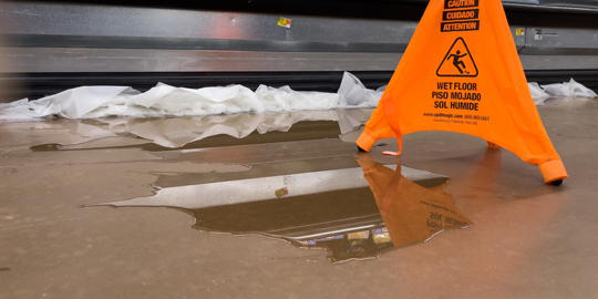 - Wet floors or spills with no warning signs for customers